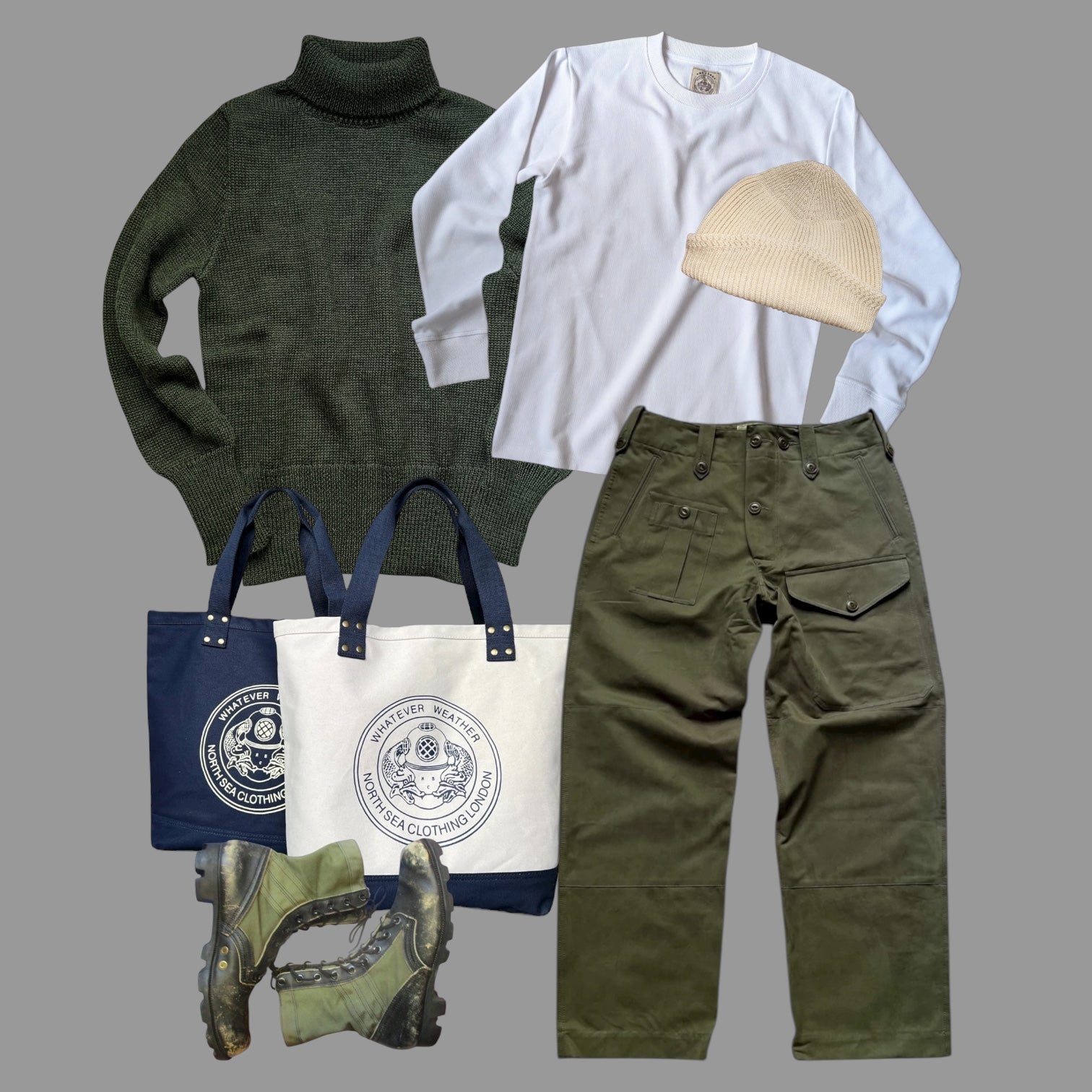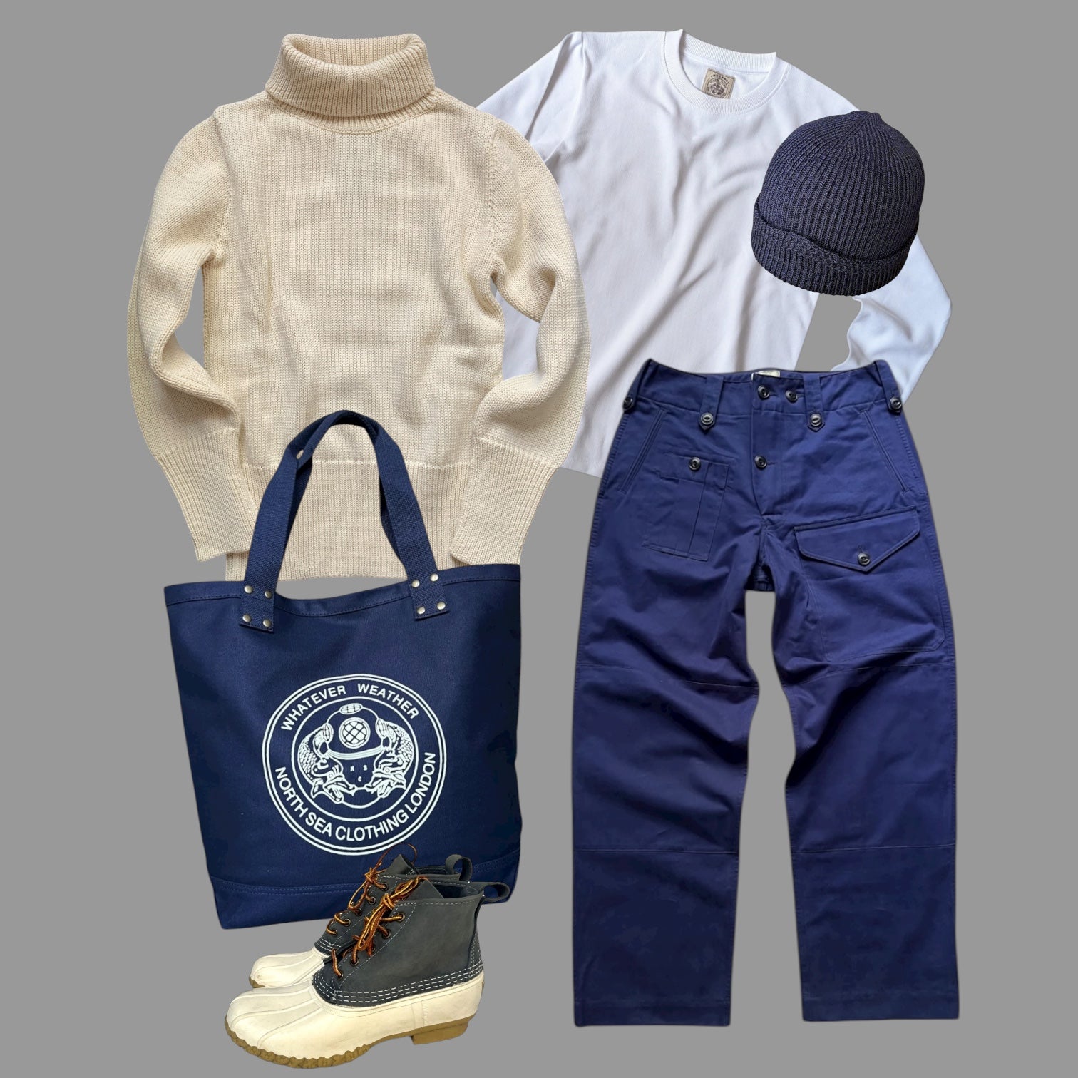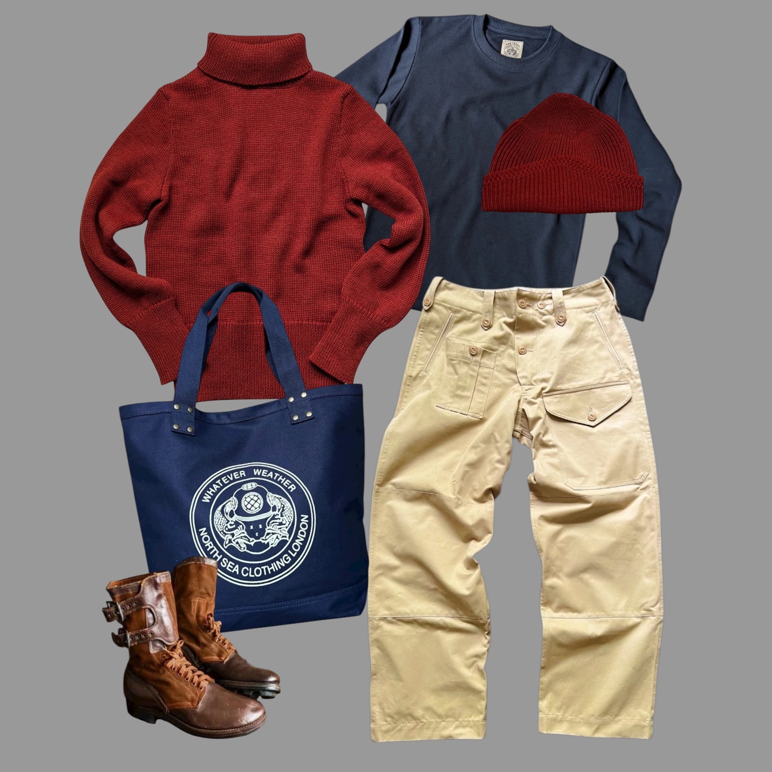 Constructed with our 100% British wool knit with signature N.S.C. ribbed waist and cuffs.