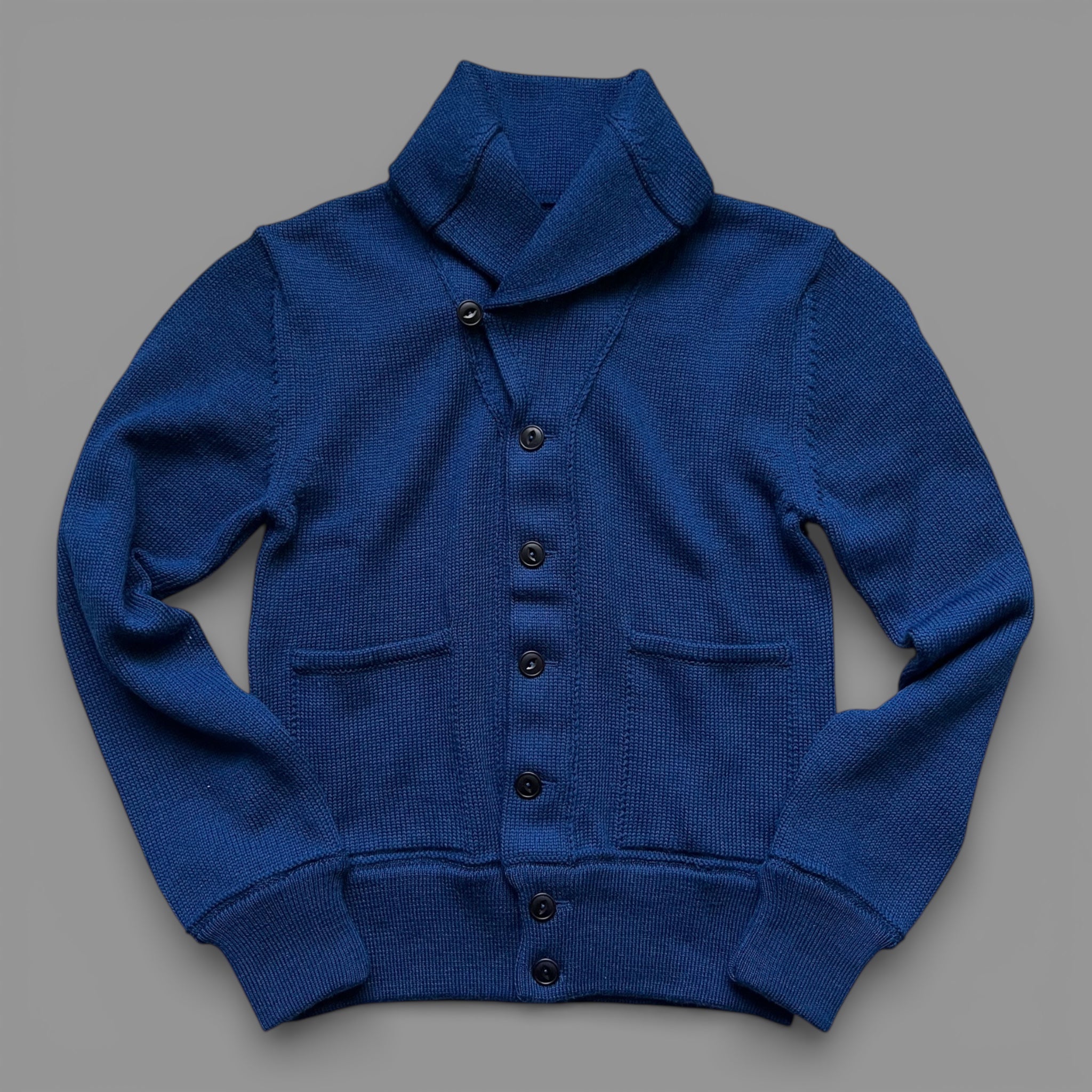 Knitted in 100% British wool, 5 gauge, and finished with all natural Italian made corozo nut "fisheye" style buttons.